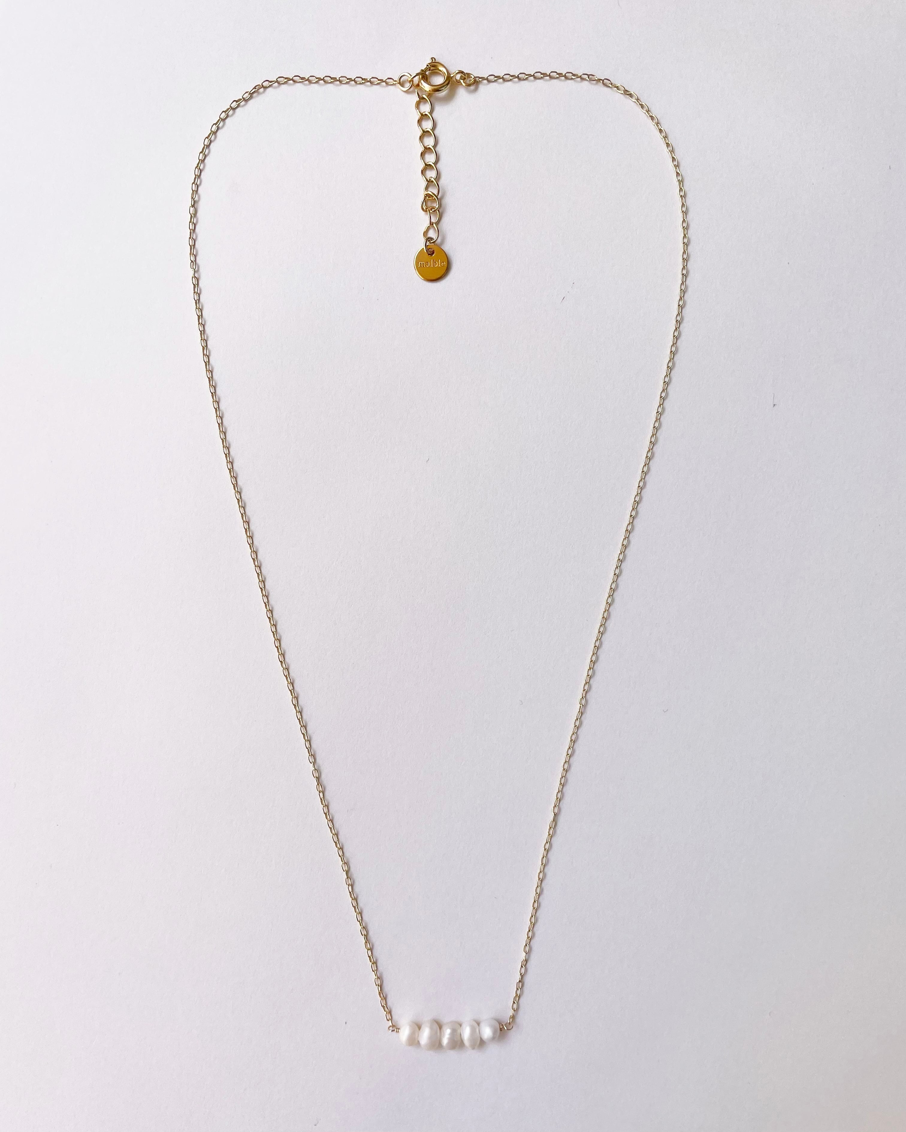 少しマット感のある輝きの琵琶パールを、横一列に並べて仕立てたネックレスです。