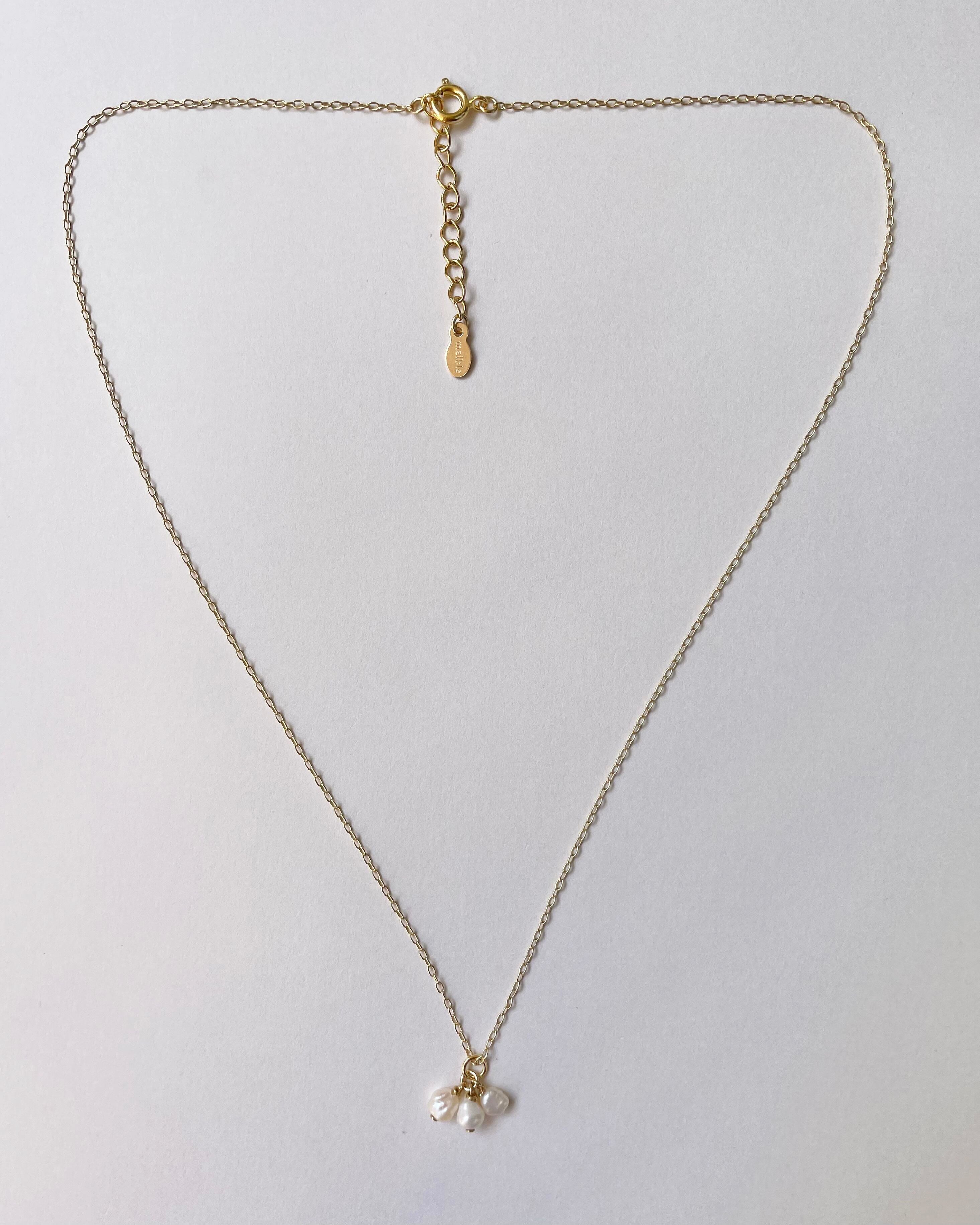 小さな琵琶パールを3粒あしらったネックレスです。